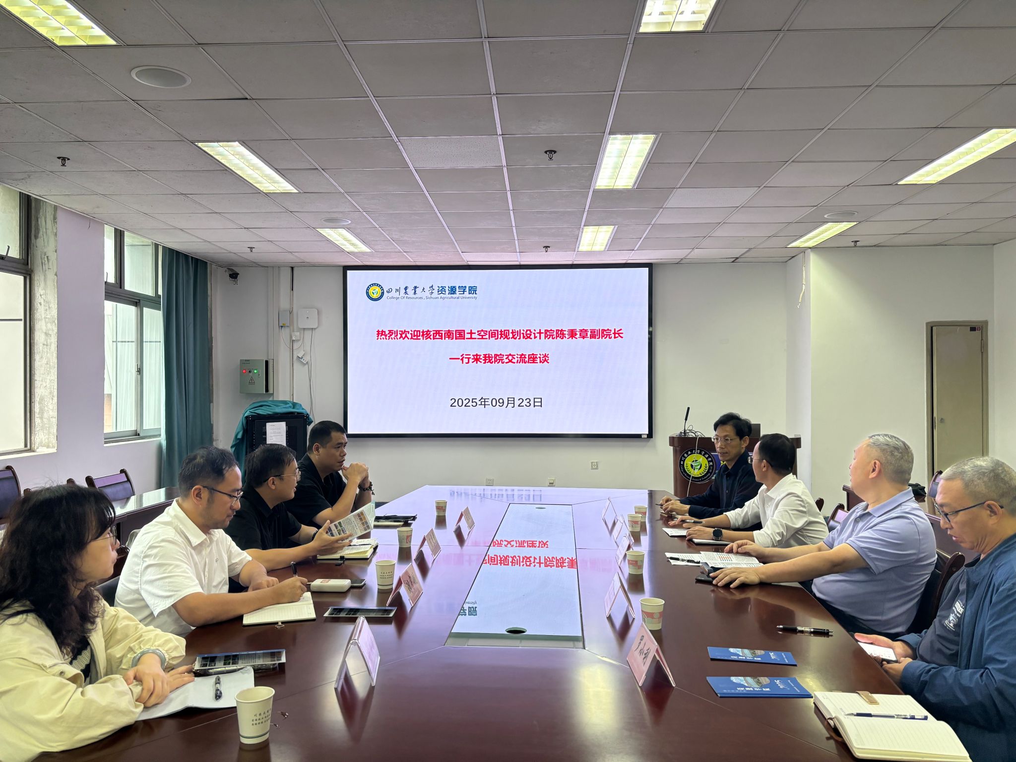 9月23日上午,核西南国土空间规划设计院副院长陈秉章、刘宇航、王达台,人力资源负责人彭姗姗一行4人来院洽谈合作。学院院长邓仕槐、副院长陈光登、资源信息科学系主任徐精文、土地资源科学系教授夏建国、学院就业秘书参加了会议。会议由陈光登主持。