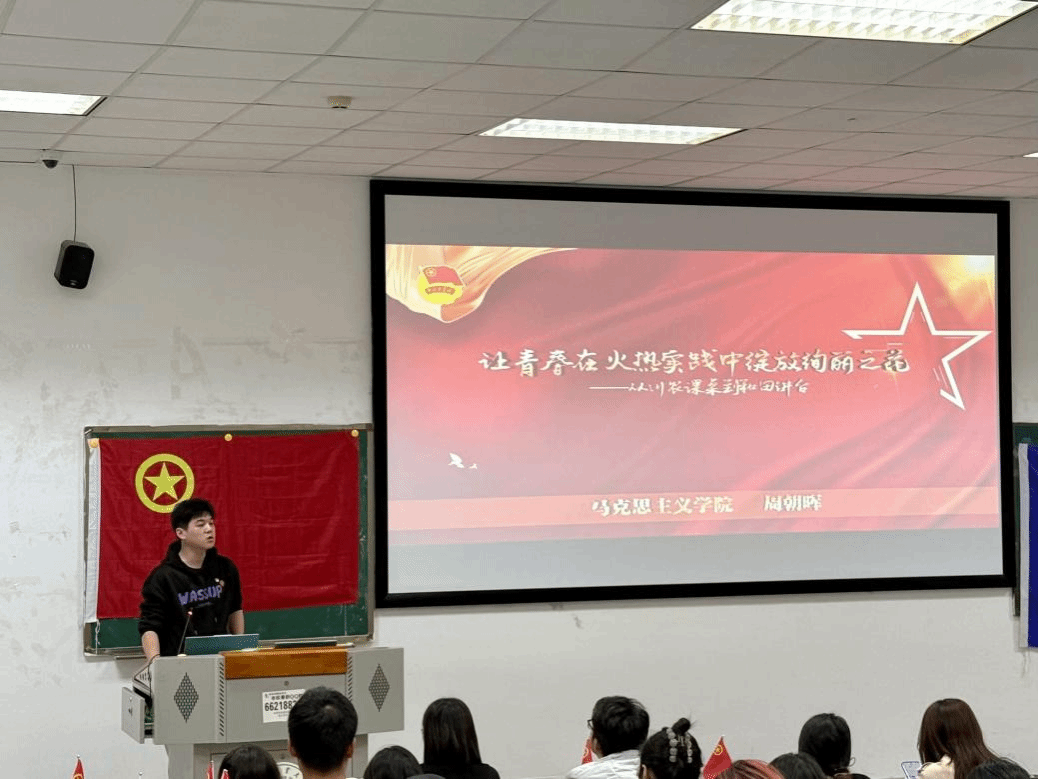 结业仪式上,学院特邀第八期校青马班优秀学员、第26届研支团和田分团成员、四川省青年实干家。现任马院研究生第一党支部书记、马院党团服务中心副主任的2025级硕士研究生周朝晖同学做“让青春在火热实践中绽放绚丽之花”主题讲座。周朝晖结合自身学生干部成长经历,围绕学习能力提升、综合素质拓展与自我心态调节三方面分享经验方法。他强调“为人民服务永远是康庄大道”,并深入阐释了“右木”精神的深刻内涵,以“责任、奋斗、努力”三个关键词概括了优秀青马班学员应遵守的准则。