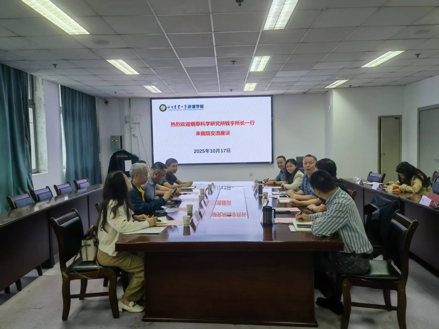 10月17日,四川省烟草科学研究所所长钱宇、副所长冯长春一行5人来院座谈交流。学院院长邓仕槐教授、王昌全教授、陈强教授等10余人参会,会议由副院长陈光登主持。